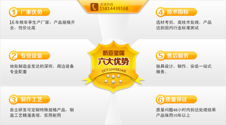 公司主要從事城市公共設(shè)施、廣告設(shè)備、欄桿系列產(chǎn)品的研發(fā)和生產(chǎn);公交候車亭、廣告燈箱、站牌、高端閱報(bào)欄、崗?fù)ぁ⒔饘贆跅U等系列產(chǎn)品